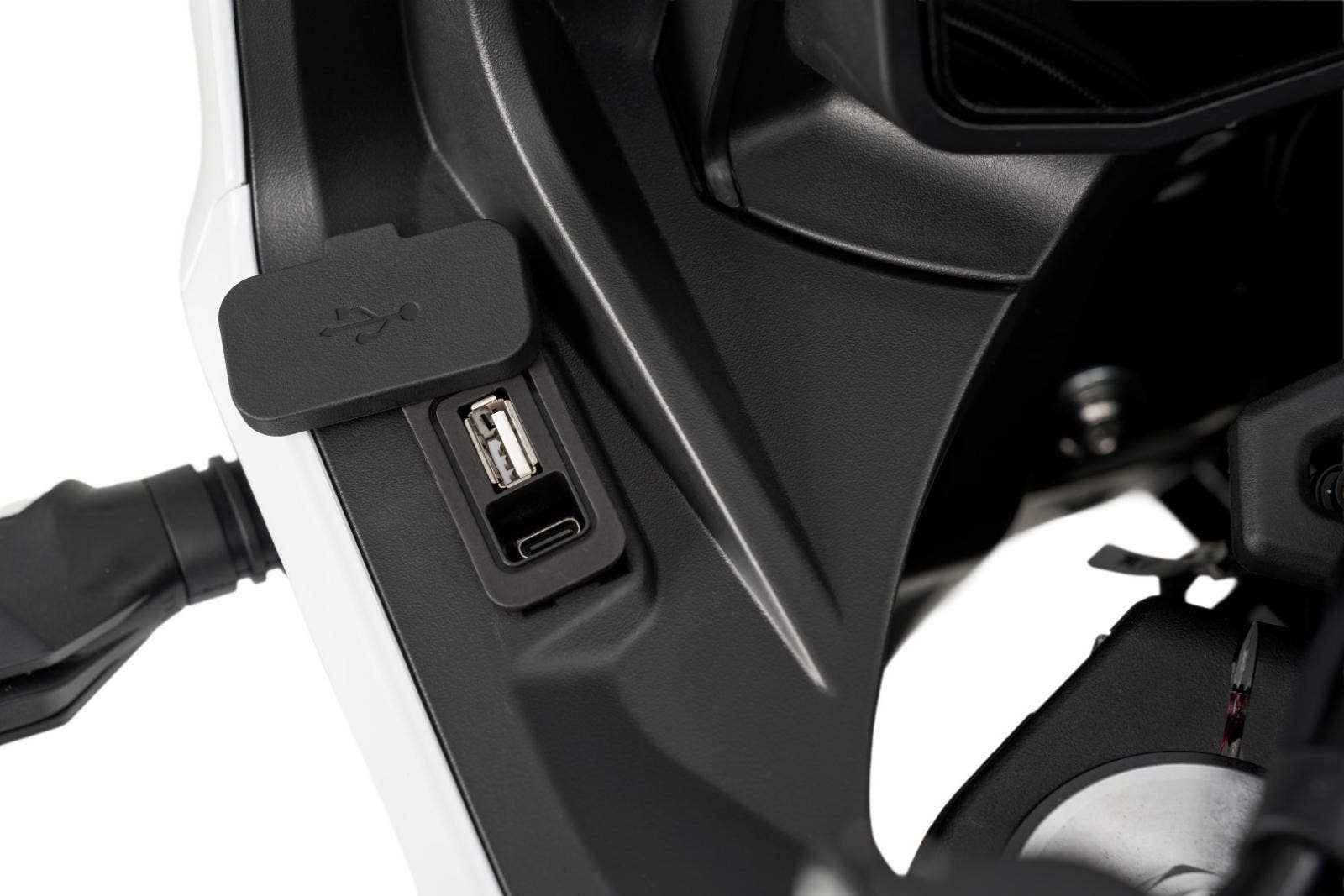 7“ TFT displej, obousměrné rychlořazení, centrální stojan, třístupňové vyhřívání rukojetí chráněných velkoplošnými blástry, vyhřívaná sedla řidiče i spolujezdce, jednou rukou nastavitelné plexi, tempomat, senzory tlaku v pneumatikách nebo zadní radar varující světýlky v zrcátkách před vozidlem v mrtvém úhlu. A to není vše, displej umí i integrovanou navigaci prostřednictvím appky pro iOS i Android, jsou tady také dva USB porty (A a C), přisvěcování do zatáček nebo přední kamera nahrávající nepřetržitě až 15 hodin záznamu.